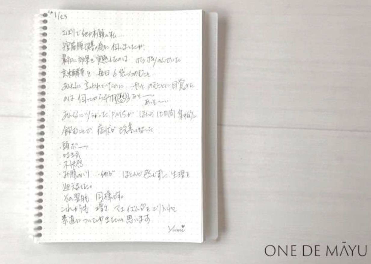 あれだけ悩んできたPMSが嘘のようになくなって、びっくり!麻由さんについてきてよかった〜って思いました。仕事にも集中できるし本当によかったです。