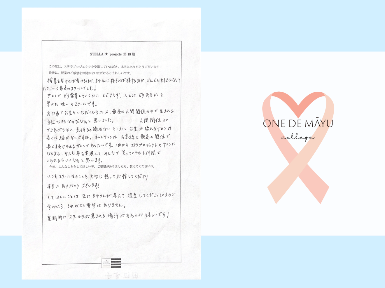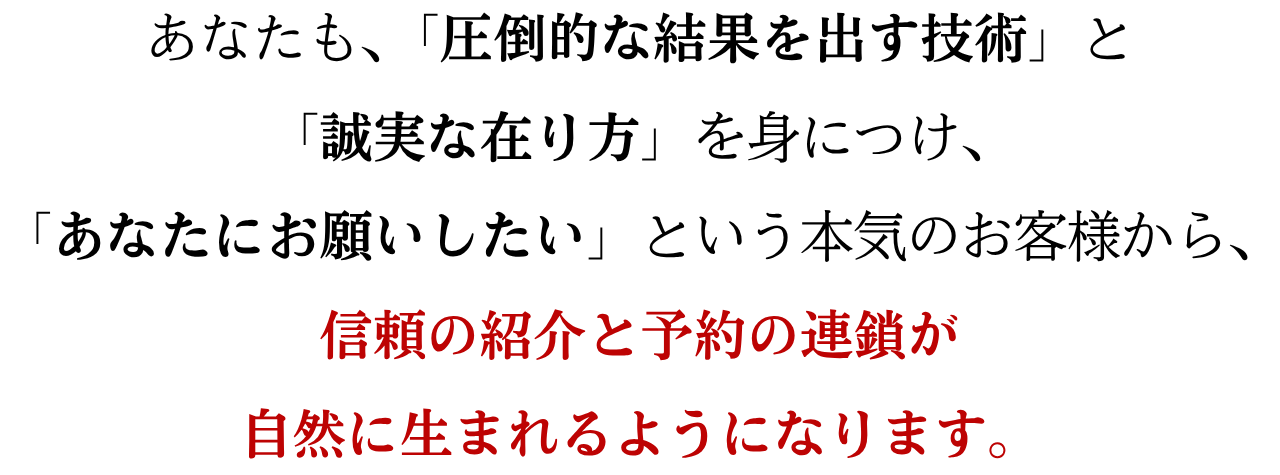 12ヶ月で卒業させる在り方を学んで、お客様に『ここが最後のサロンです』と言われるようになりました。本当に感謝されながら送り出せる喜びを知りました。卒業してもらうのは勇気が要ったけど、逆にたくさんのお客様に続けてもらえています。