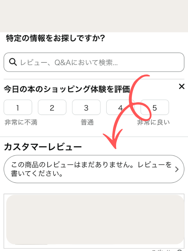 ② 下までスクロールすると「カスタマーレビュー」が出てきます。そちらをタップすると書くことができます。