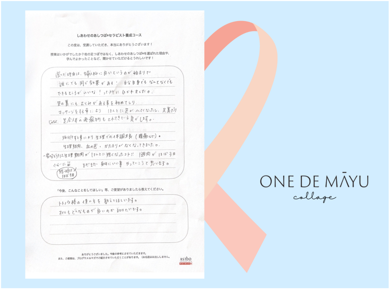 たのしい足つぼを学ぶことが出来て自分自身もしあわせな気持ちで施術ができる"iTubo"に出会えて感謝です。