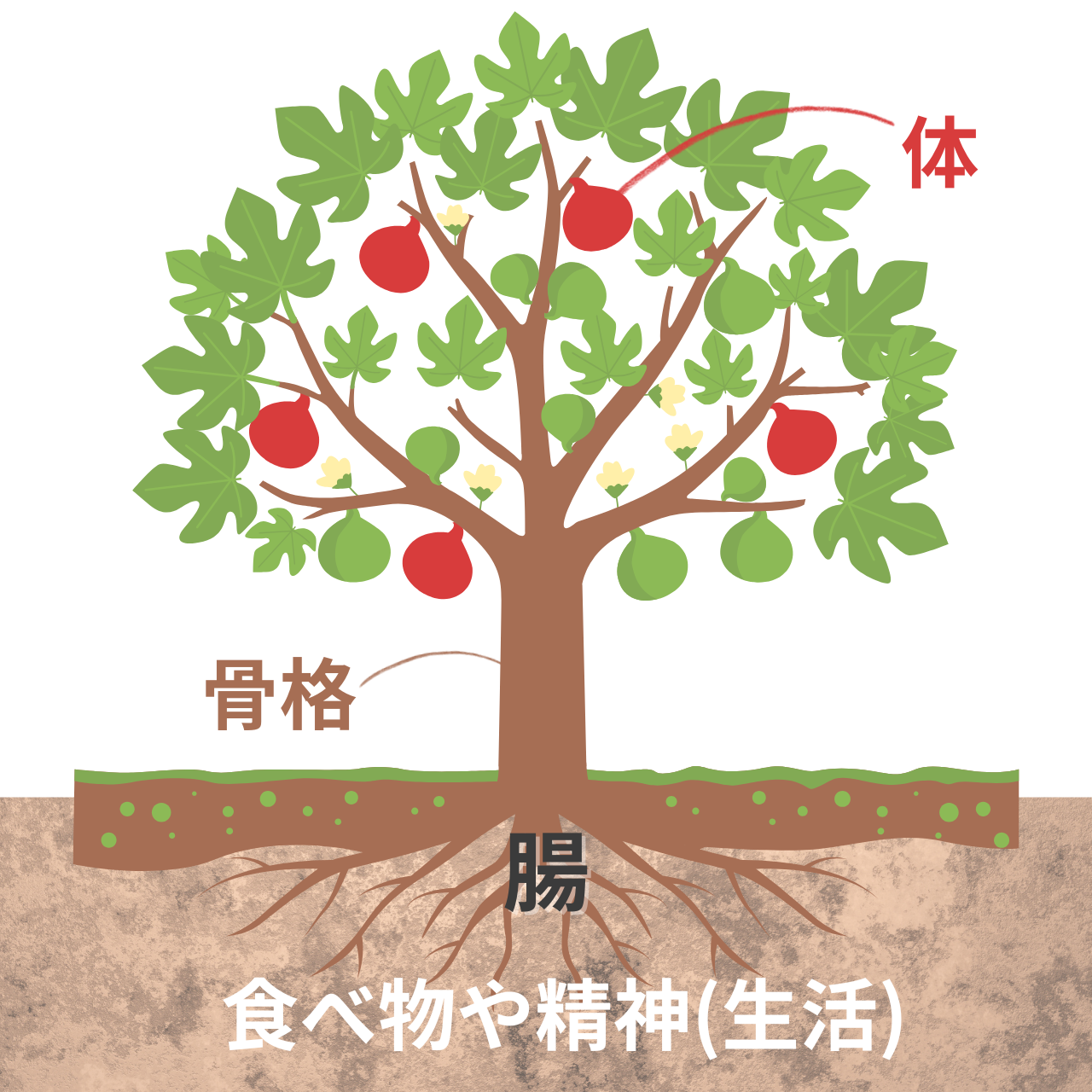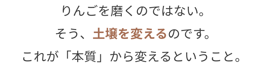 根っこが健康なら、幹も葉も実も、木全体が健康に。