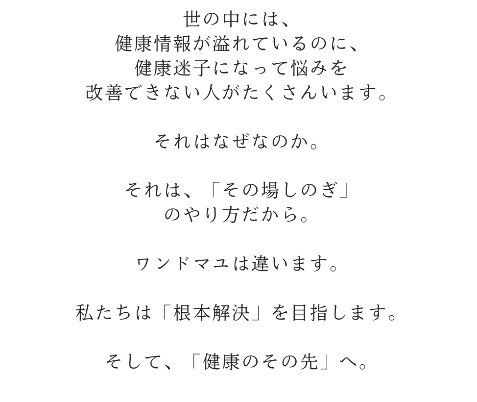 私たちが大切にしているのは、「健康のその先へ empowerment wellness」という想い。